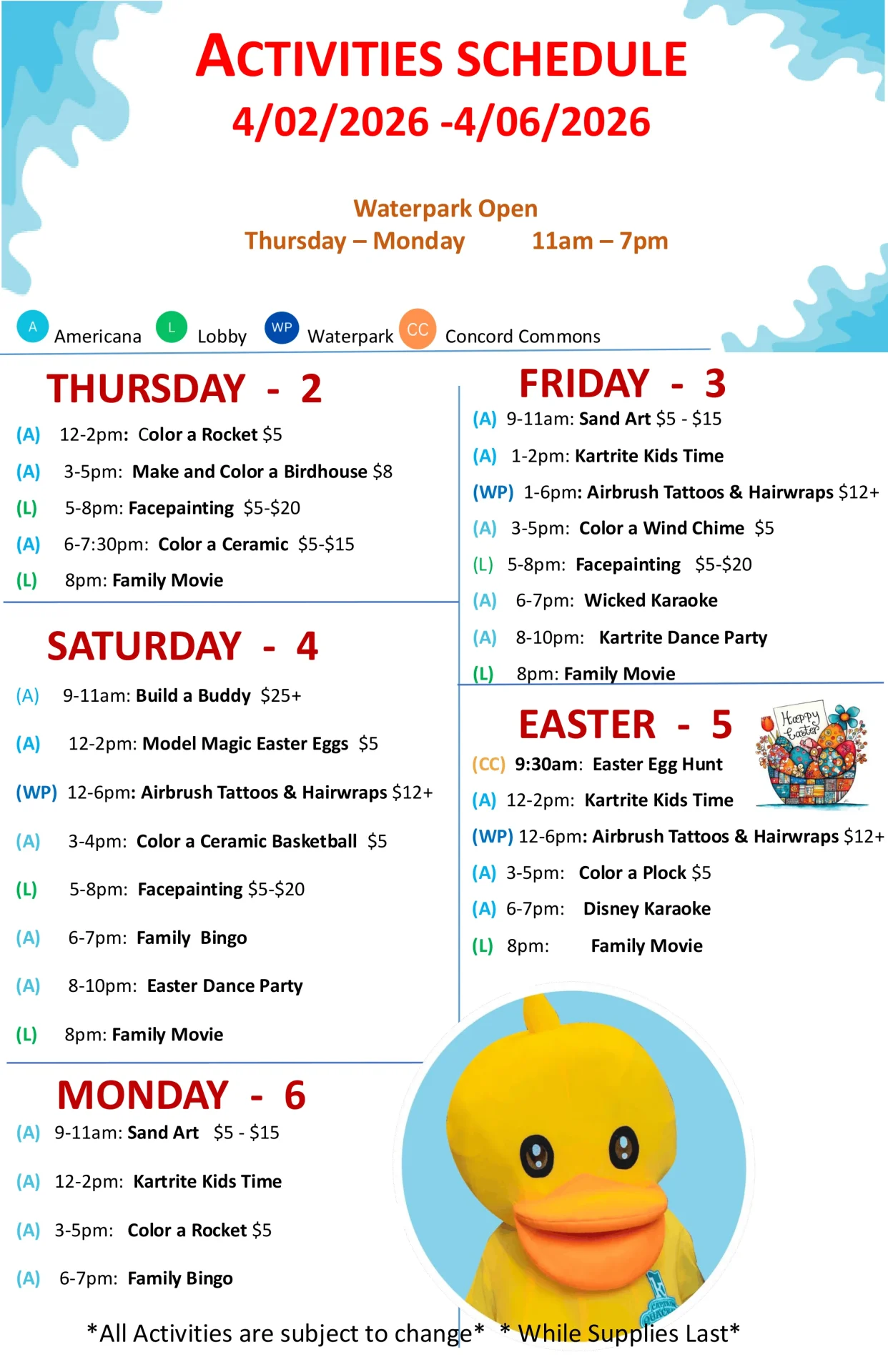 *Activities, location and times are subject to change*